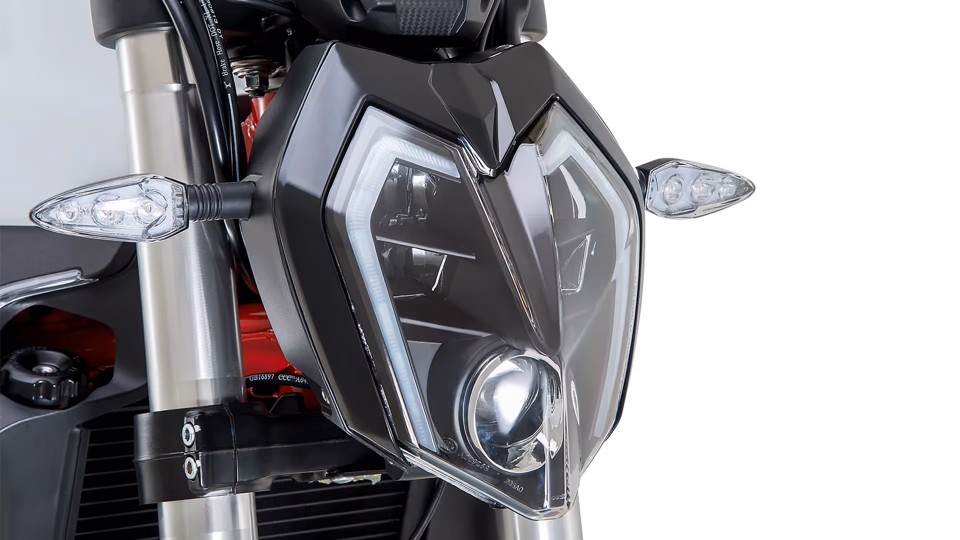 The Benelli 302S is a friendly yet fully capable naked motorcycle taking on the role of a just-jump-on-and-ride everyday machine. It’s powered by a 300cc liquid-cooled DOHC parallel twin with four valves per cylinder, fed by EFI. Bore and stroke is 65x45.2 mm, and the compression ratio is 12:1, providing peak power of 38 hp at 11,000 rpm, with max torque at 18.9 ft. lbs. at 9750 rpm. Final drive is through a six-speed transmission and chain.