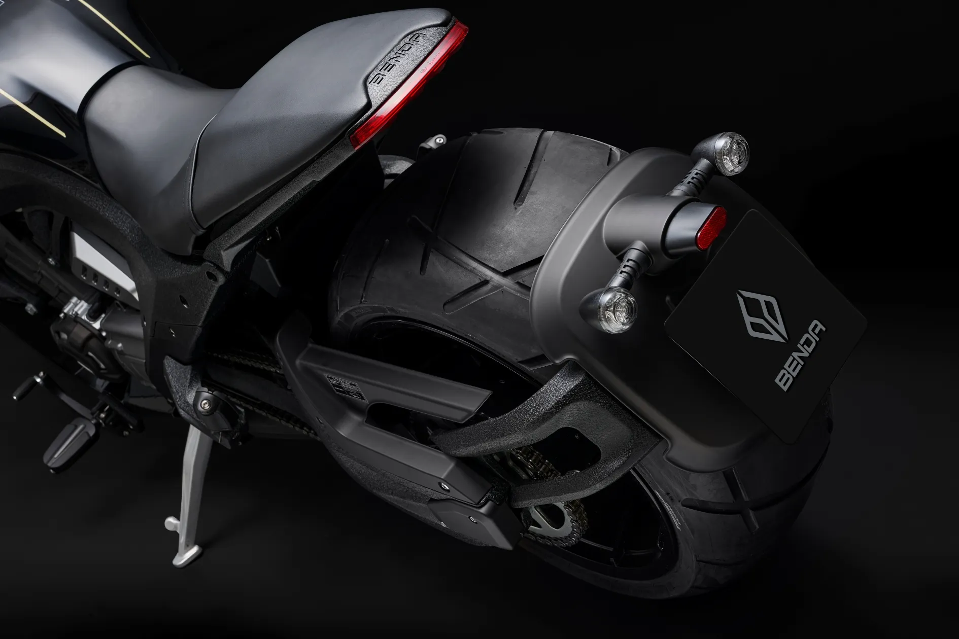 The Benda LFC700 represents the pinnacle of sport-cruiser engineering, seamlessly integrating aggressive design, advanced technology, and raw power. Featuring an inline-four-cylinder engine delivering approximately 80 horsepower, Brembo brakes with ABS, high-performance KYB suspension, and a striking single-sided swingarm with a 310mm rear tire, the LFC700 is built to dominate. Its full-color TFT display and various riding modes ensure a customized, thrilling experience. Designed to dominate, the LFC700 stands as a statement of power, precision, and authority.